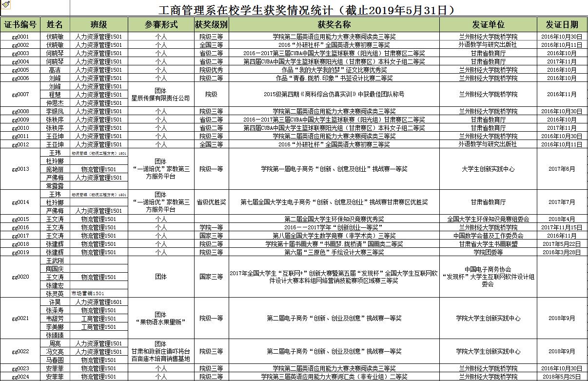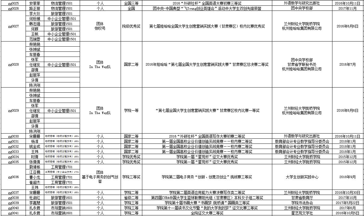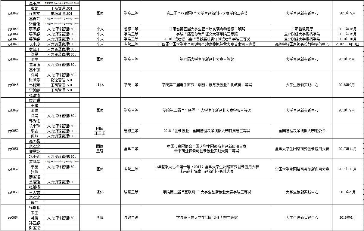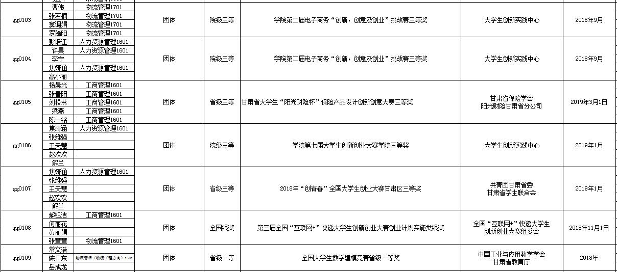 我系学生创新创业学科竞赛获奖汇总表