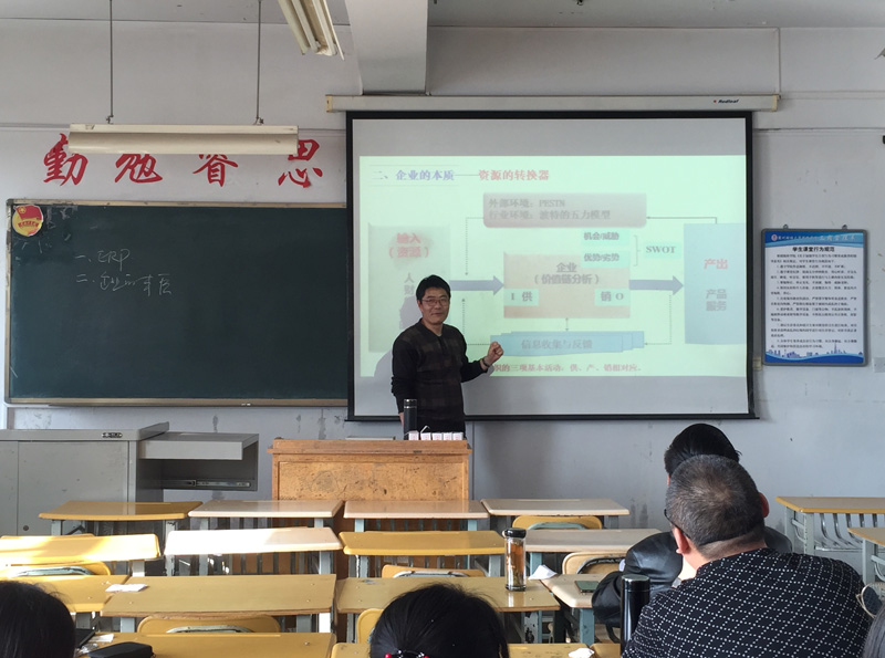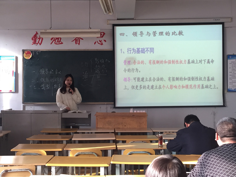 首先,戚登林老师讲授了《ERP沙盘模拟实验》、孙振兴老师讲授了《旅游心理学》、卜鹏爱老师讲授了《公共关系学》、滕越老师讲授了《管理学》,四位老师的教学准备充分、课堂设计合理、PPT设计精美,充分利用多媒体技术和板书,讲授知识丰富,生动形象地从理论知识、实际意义等方面进行了讲解,通俗易懂,课堂气氛较好,得到了老师们的一致肯定和认可。