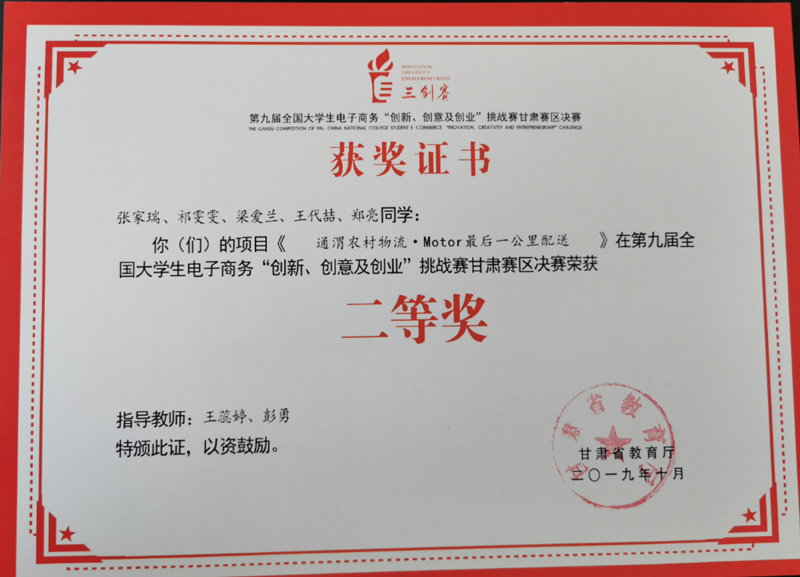 本次大赛我系积极组织动员,全体师生踊跃参与,共有34个参赛队参加了本次大赛,参赛人数约180人左右,最终共有10个参赛队进入省赛,其中王蕊婷老师和彭勇老师指导的《通渭农村物流•Motor最后一公里配送》好丁亚鸽老师指导的《青年社区互助成长》荣获省级二等奖,其余三支参赛队均获得省级优秀奖。