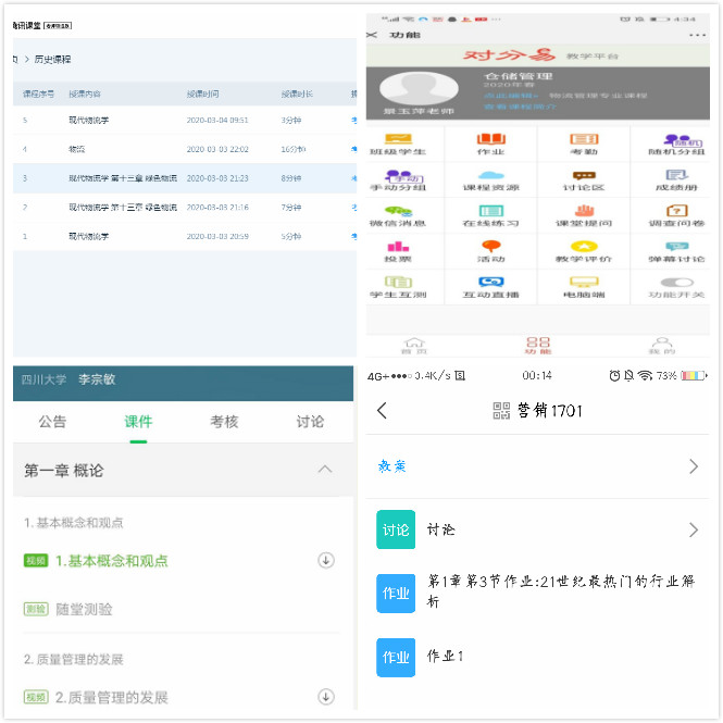 以往都是在假期老师们进行备课,教案、日志、讲义等教学资料的准备,但是今年由于疫情的影响,不得不进行线上教学。开学初期,我系召开钉钉视频会议安排部署了线上教学的具体工作要求。老师们通过利用超星学习通、中国大学MOOC、智慧树、优课联盟、学堂在线雨课堂、钉钉云课堂、腾讯课堂、微信公众号(对分易)、微信群、QQ群等多种线上平台和资源,通过现有教学视频学习、上传课件和相关视频学习、录制微课视频和直播教学等线上教学手段,完成了我系除实践课程的教学任务。