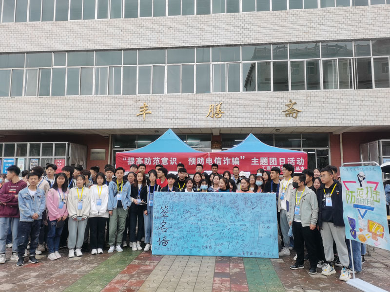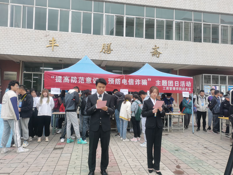 4月1日中午,我院团总支在丰膳斋门口开展了“提高防范意识,预防电信诈骗”主题团日活动。