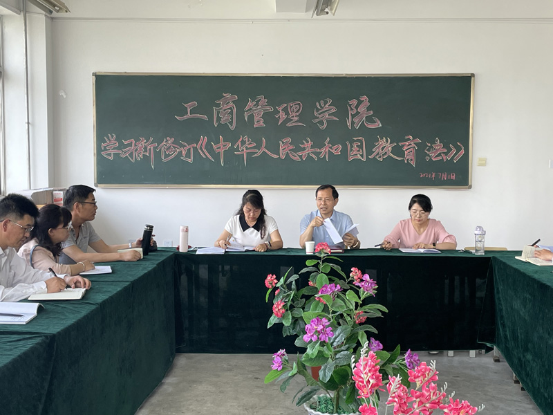 第十三届全国人民代表大会常务委员会第二十八次会议审议通过了《全国人民代表大会常务委员会关于修改<中华人民共和国教育法>的决定》,并于2021年4月30日起施行。为做好新修订《教育法》的学习宣传和贯彻实施工作,7月1日下午,我院在3-413组织讨论学习新修订的《中华人民共和国教育法》,参会的有:执行校长路文江教授、院长丁亚鸽副教授、院长助理剡海静老师,全体教师及辅导员。