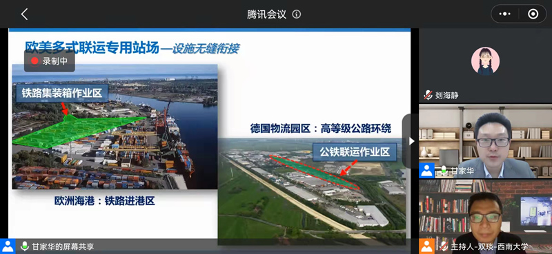 本期讲座由西南大学智慧物流与管理系主办,交通运输部规划研究院甘家华博士主讲,通过腾讯会议平台线上进行。讲座中,甘家华博士结合自身多年实际工作经历,围绕多式联运概念与内涵、我国多式联运发展现状与趋势、多式联运发展的重点任务三个方面对多式联运进行了系统而深入的讲授与阐述。此次讲座使我院参加学习的教师对物流行业发展趋势、理论前沿、专业实践有了更深层次的认知,为教学科研能力的提升奠定了良好的基础。