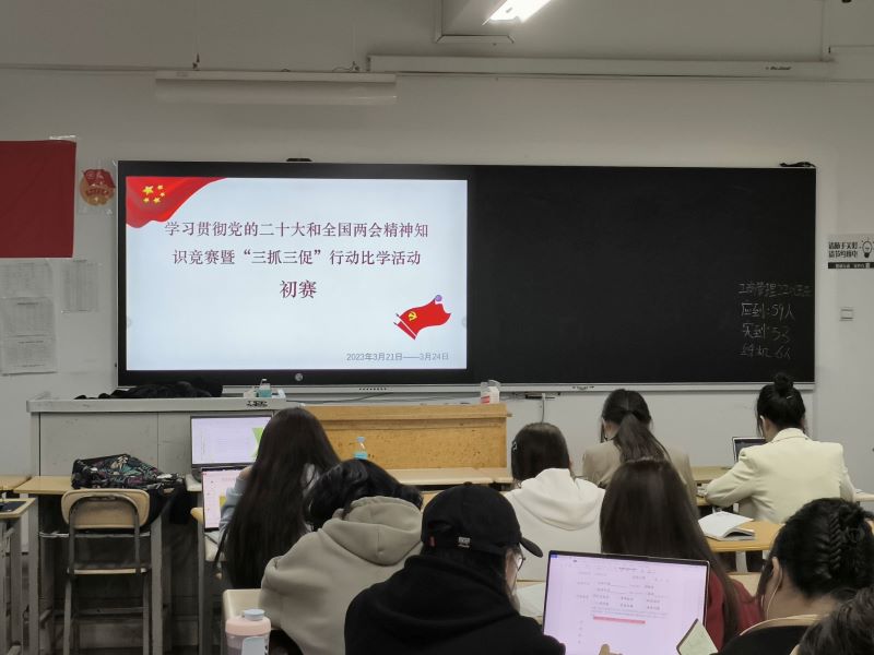 为深入学习贯彻党的二十大和全国两会精神,扎实开展“三抓三促”行动,2023年3月28日,工商管理学院党总支积极落实学校要求,举办学习贯彻党的二十大和全国两会精神知识竞赛暨“三抓三促”行动比学活动,组织引导全体学生自觉把思想和行动统一到学习贯彻党的二十大和全国两会精神上,教育引导学生做到内化于心、外化于行。