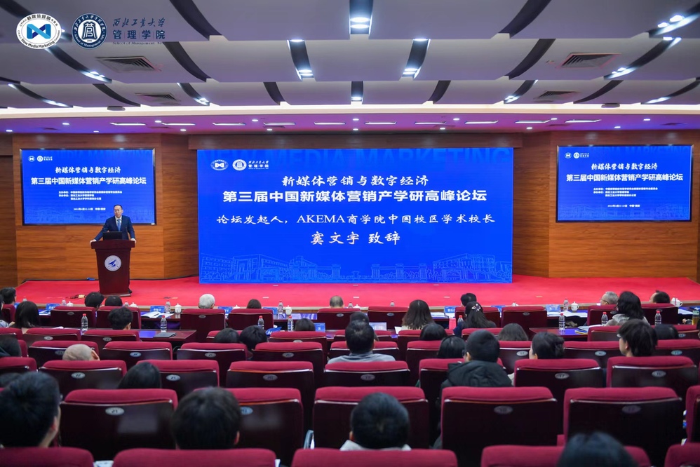 42223日,由中国高等院校市场学研究会新媒体营销专业委员会主办,西北工业大学管理学院、西北工业大学学科建设办公室承办的第三届中国新媒体营销产学研高峰论坛在西北工业大学举办。本次会议的主题是:新媒体营销与数字经济。会议主要分为三个模块,开幕式+主旨报告、案例研究与教学专场主题报告、业界专场主体报告。