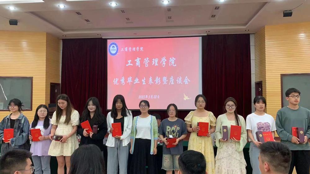 奋楫扬帆正当时,勇毅笃行向未来。5月22日上午,工商管理学院2023届优秀毕业生表彰暨座谈会在学术报告厅三楼隆重举行。院长剡海静、书记张希伟、毕业班辅导员及2023届毕业生代表参加了会议,会议由学院团总支书记张鹏主持。
