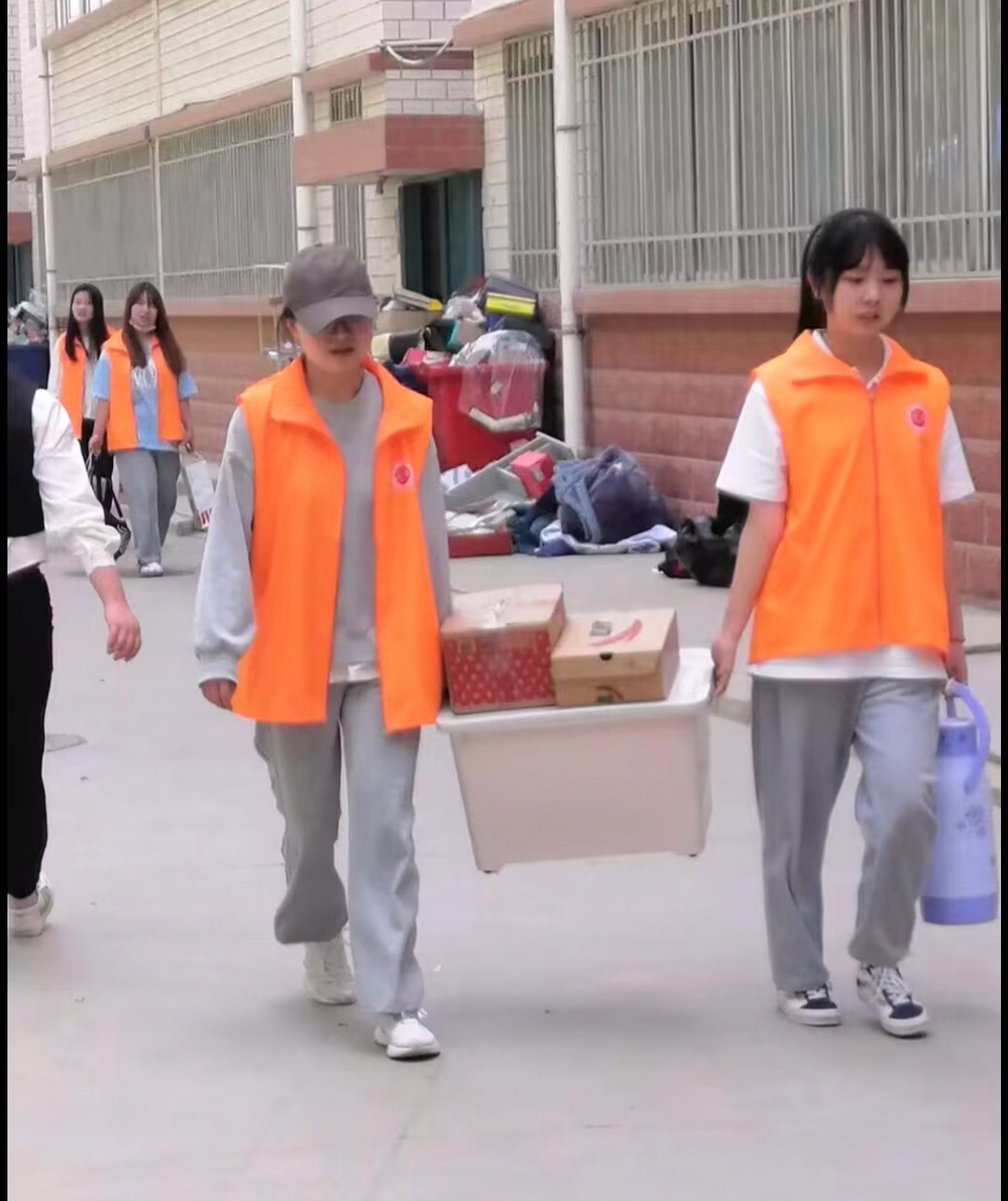 为保障毕业生离校工作安全有序开展,学院多措并举,安排学生党员志愿者,发挥党员的模范带头作用,用行动践行初心使命,用服务温暖毕业学生。设立党员先锋岗,轮班值日,全天坚守,不畏夏日酷暑,以饱满的热情、积极的服务态度,全身心地投入到服务中去。在9号楼和7号楼楼内外随时都可以看到黄色志愿服务马甲的党员同志们,帮助离校学生们搬运行李,照看行李,将行李搬运到邮寄行李寄送点和学校门口,用实际行动服务学生。