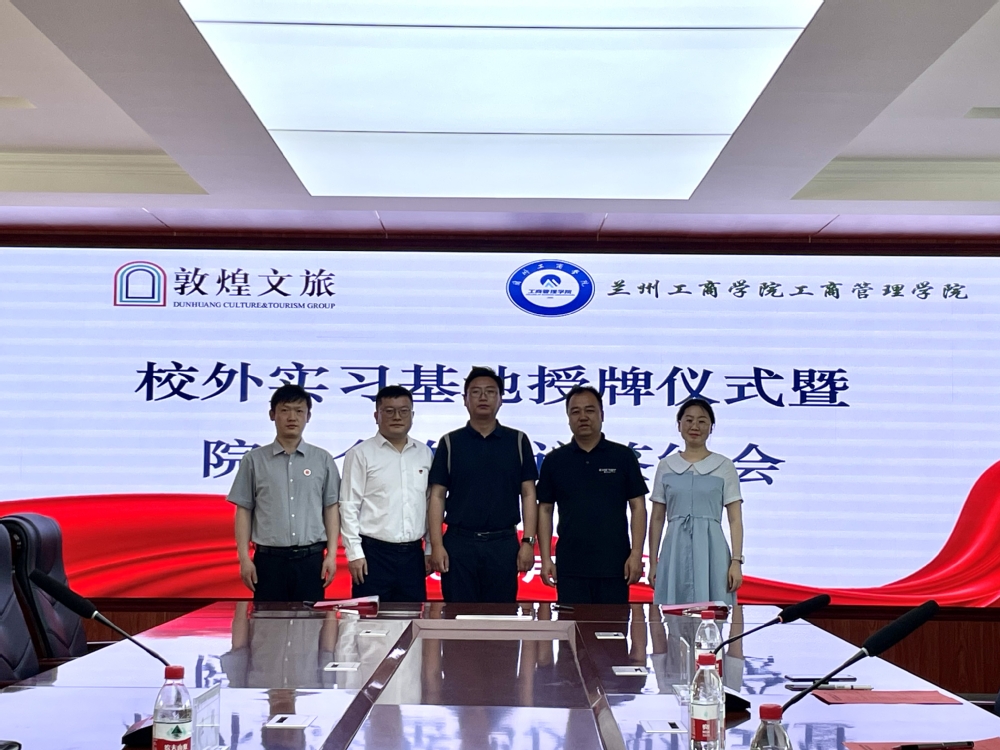 为加强校企合作力度,实现校企优势互补、资源共享,进一步拓宽学生实习就业渠道,6月19日中午工商管理学院在帷运楼二楼会议室举行敦煌文旅集团有限公司和工商管理学院校外实习基地授牌暨校企合作协议签订仪式。敦煌文旅集团有限公司人事部总经理王强、兰州工商学院校长助理康昱明、工商管理学院党委书记张希伟、教学院长徐燕、办公室主任徐建生及全体辅导员参加了签约仪式,会议由院党委书记张希伟主持。