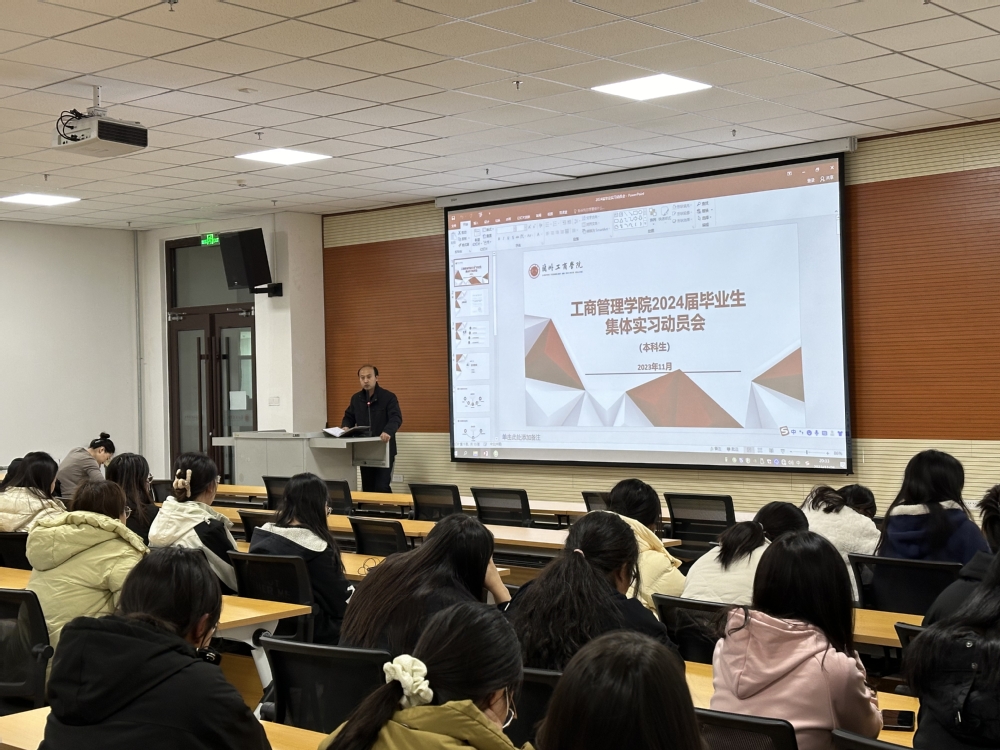 11月26日晚,工商管理学院在综合教学楼C503教室召开了2024届本科毕业生集中实习动员会,学院领导及100余名未落实就业去向的2024届本科毕业生参加了动员会。