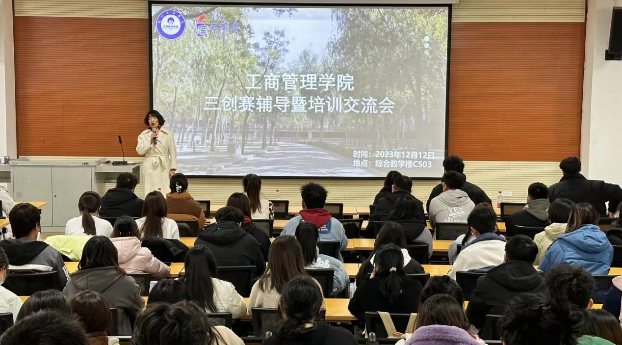 为进一步提高学生 “三创赛”的参赛积极性和作品质量, 20231212日,工商管理学院在综合教学楼C503举办了“三创赛”辅导暨培训交流会。我院100多支参赛团队代表参加了此次会议,会议由教学院长徐燕主持。会上,我院教师时书霞副教授和往届学科竞赛的优秀选手围绕创新思维、创意技能、市场分析、团队建设等多个方面,通过案例分析、现场提问、实践经验等多种形式,对参赛团队进行了辅导培训。