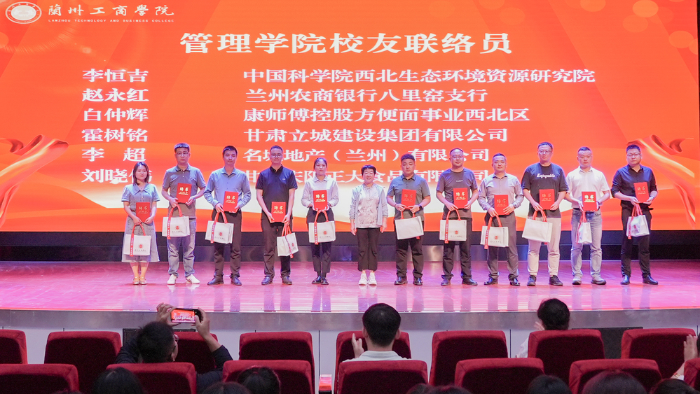随后,在学术报告厅举办优秀校友交流分享活动,校领导、管理学院师生近800人参会。会议由党委书记兼行政院长马进宝主持。首先,对受聘为校友联络员的校友发放聘书及纪念品。而后,对校企合作企业,中车集团兰州销售公司和康师傅控股西北区进行授牌仪式。最后,由中国科学院西北生态环境资源研究院李恒吉博士、康师傅控股方便面事业西北区白仲辉、甘肃立城建设集团有限公司霍树铭、中车集团兰州销售公司赵董丽、中车集团兰州销售公司田燕军等优秀校友进行分享发言。