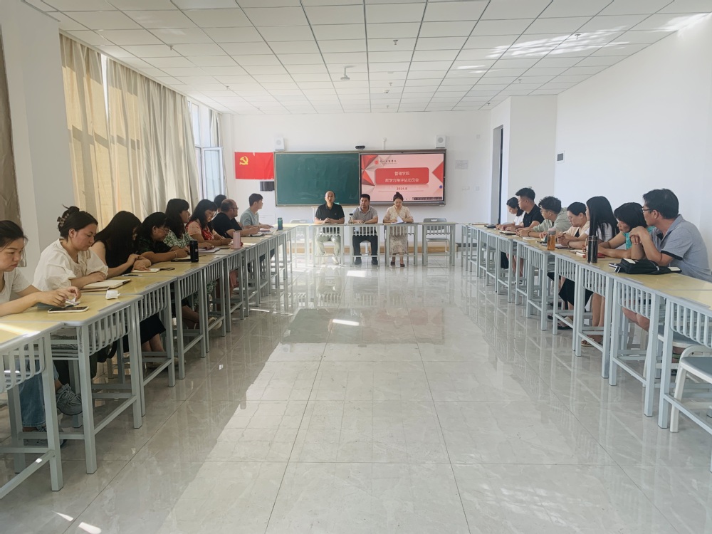 为落实本科教学合格评估工作要求,8月1日,管理学院在C307教室召开全院暑期工作安排部署会议,会议由学院党委书记兼行政院长马进宝主持,院长把多勋,教学院长徐燕及全院教师参会。