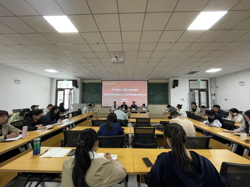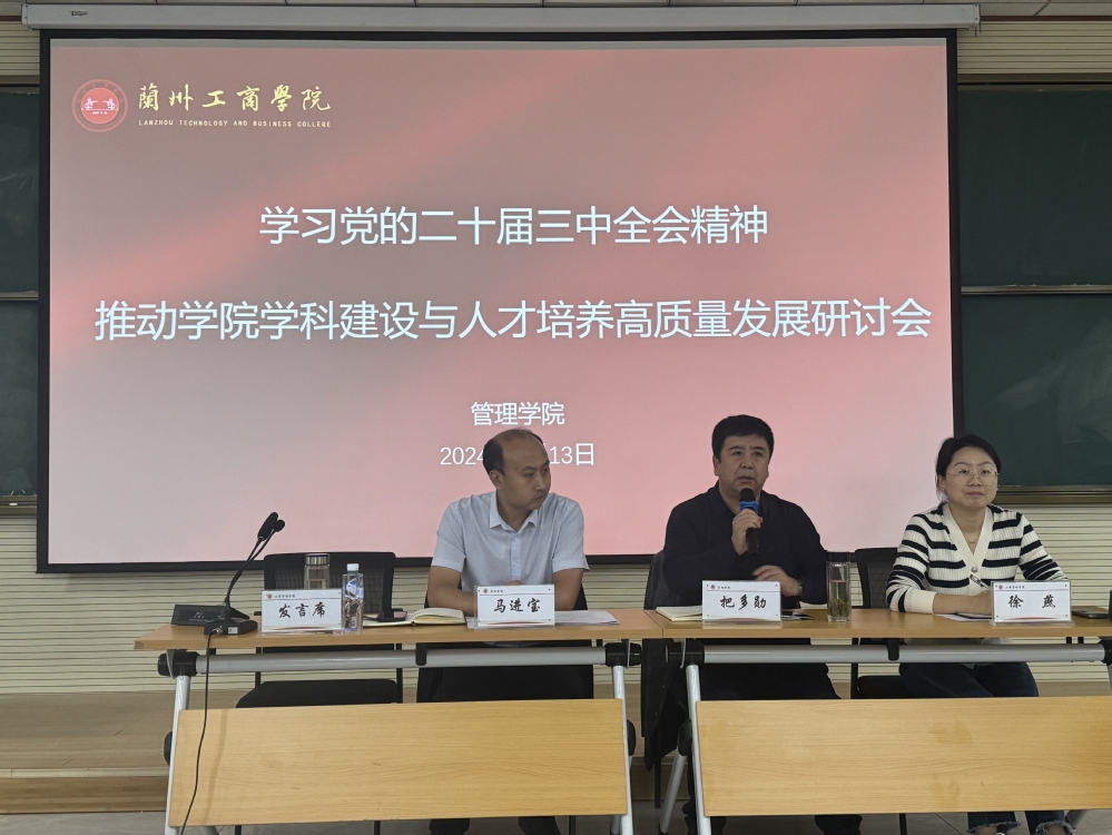 9月13日下午,管理学院在C503教室组织召开学习党的二十届三中全会精神,推动学院学科建设与人才培养高质量发展专题研讨会,学院领导班子及全体教职工参加研讨会,会议由党委书记行政院长马进宝主持。