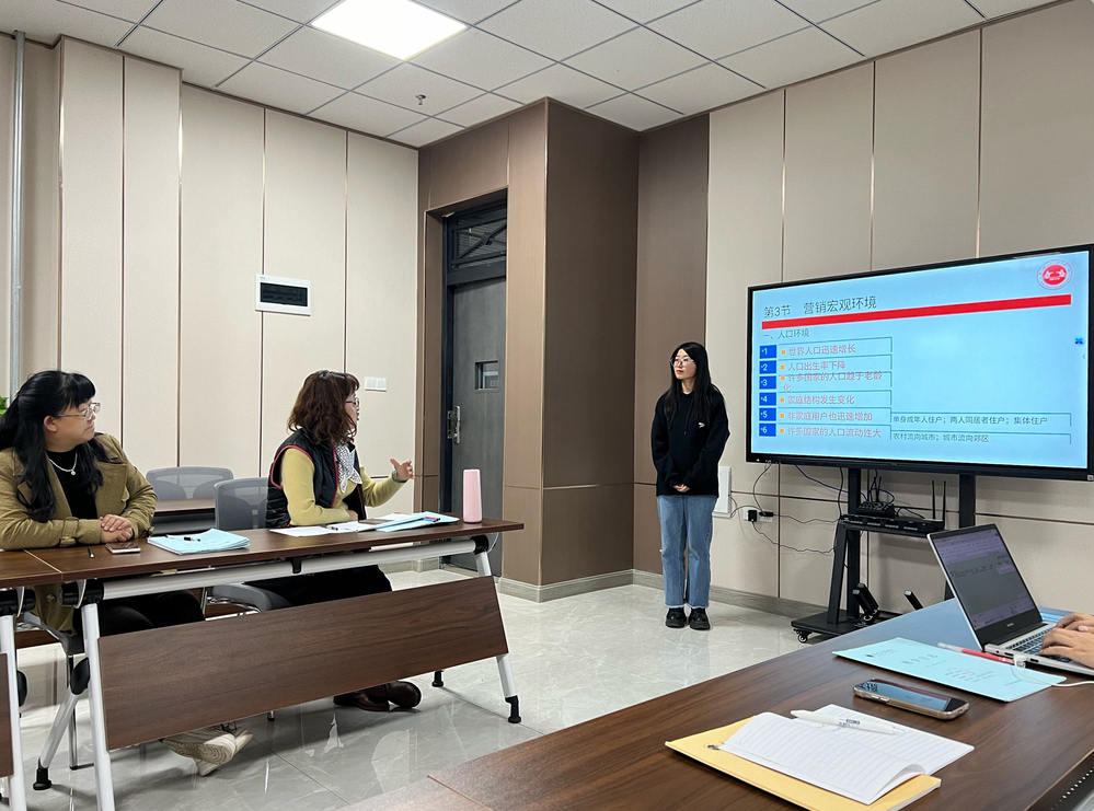 为加快新进教师的专业成长步伐,促进教学经验的交流与共享,切实做好教育教学规范化建设,2024年10月17日,管理学院商贸流通教研室开展了教学观摩及教学规范化研讨活动,教研室全体成员参加活动。