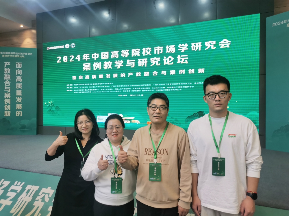 2024年11月8日至10日,2024中国高等院校市场学研究会案例教学与研究论坛在广西桂林召开。我院由工商管理教研室主任戚登林带队,王蕊婷、宋豪琦、苏宁等一行4人参加了此次论坛。