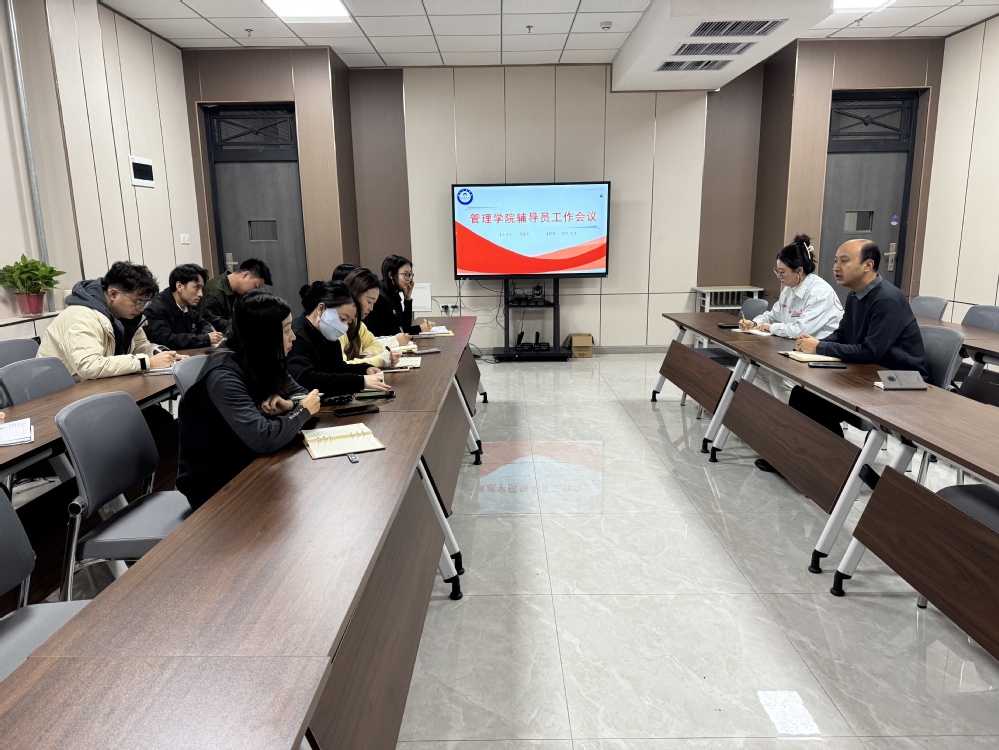 12月3日,管理学院召开辅导员工作会议,会议由党委书记、行政院长马进宝主持,全院辅导员老师参会。会议就近期管理学院思政工作及学生管理工作做了部署和安排。
