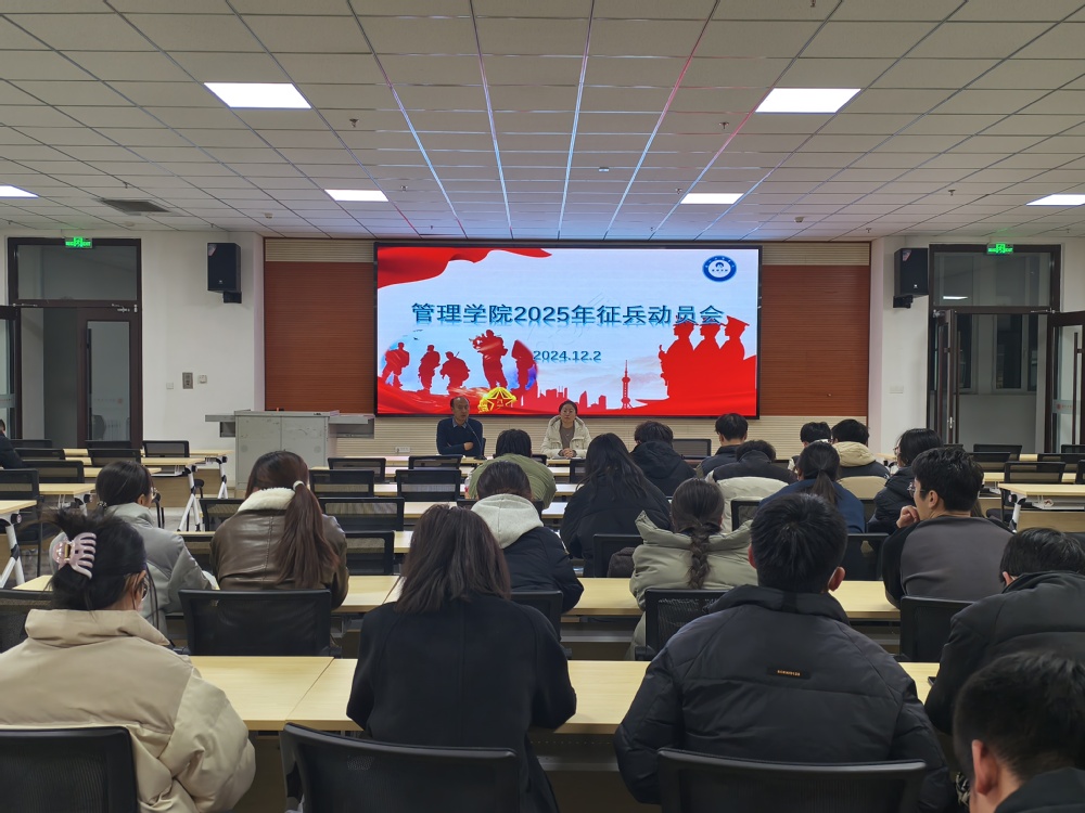 12月2日,管理学院积极响应国家号召,在C501召开了2025年征兵动员会。会议由党委书记、行政院长马进宝主持,教学院长徐燕、毕业班辅导员以及有意向参军入伍的2025届毕业生和部分在校学生代表参加了此次动员会。此次大会旨在鼓励和支持管理学院符合条件的青年学子积极投身国防事业,履行保家卫国的神圣职责,同时也为学院青年学子提供了一个展示自我、实现价值的广阔舞台。