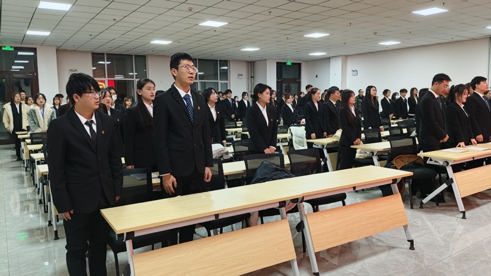 随后,进行了党团学学生干部换届仪式。新一届干部代表张国涛接过旗帜,承诺将不负重托,团结带领同学们勇攀高峰,为学院再创佳绩。