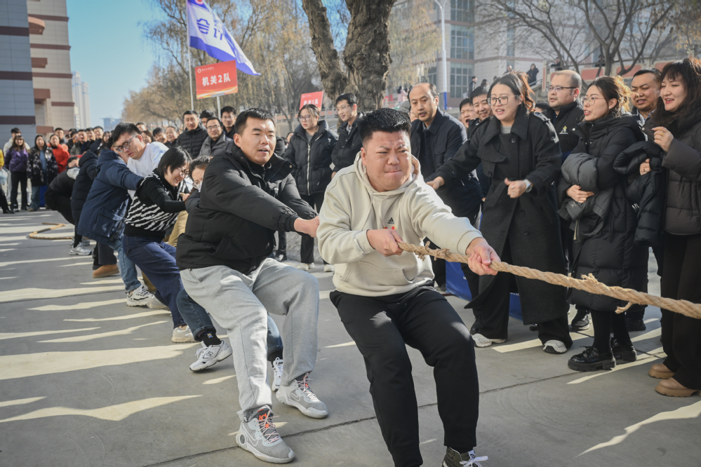2024年12月31日,兰州工商学院教工拔河比赛在学校体育馆前激情上演,来自各学院的教职工队伍齐聚一堂,展开了一场力量与团结的较量。