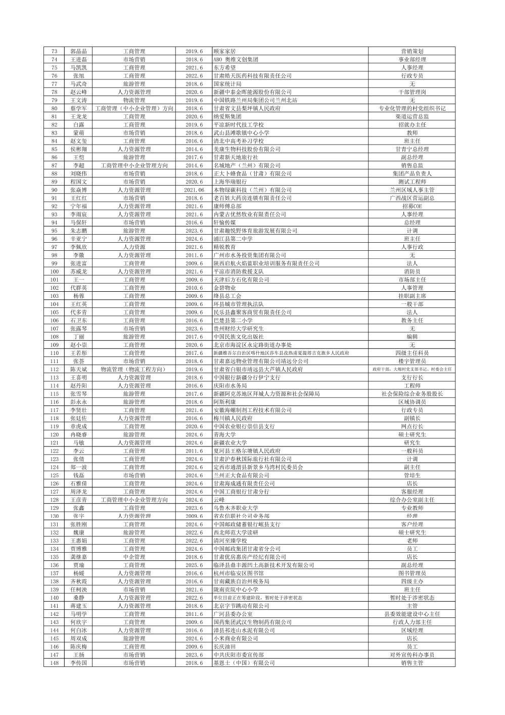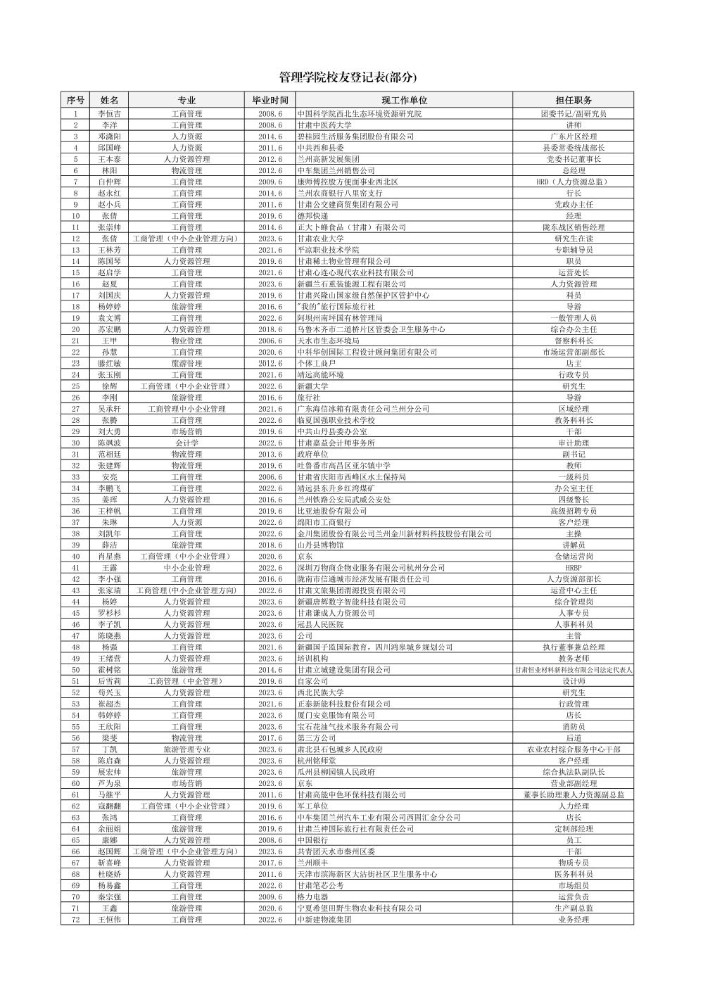 管理学院校友登记(更新中)