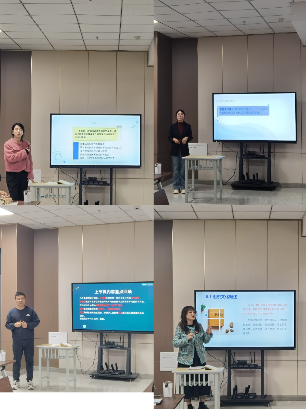 会上,青年教师李爽、王小艳、王纪伟、马雨萌进行了教学片段展示,涵盖《管理学基础》《市场营销学》《市场调查》《人才招聘与测评》等核心课程。徐燕结合每位教师的课堂展示,从课程导入、课程思政、教学目标、教学内容处理与衔接等方面逐一提出意见,她强调要以人才培养目标、课程教学目标为导向,进行课堂教学设计,要启发学生思考,提升教学质量。