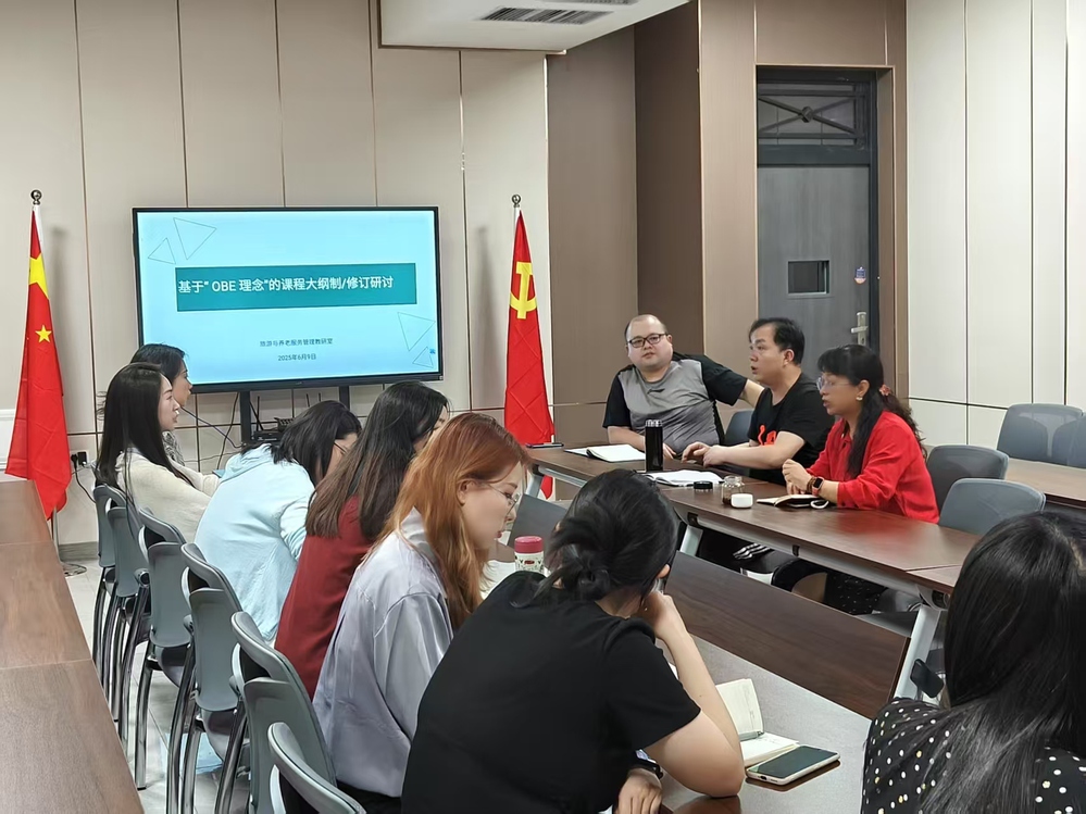 高等教育不断深化改革、注重内涵式发展背景下,将OBE理念融入课程大纲制修订,对于优化课程结构、提升教学质量、培养适应社会发展需求的高素质人才具有重要意义。202569日,旅游与养老服务管理教研室在综合楼C312举行教研室活动此次活动以基于OBE理念的课程大纲制/修订为核心议题,旨在推动教育教学改革创新,提升人才培养质量。