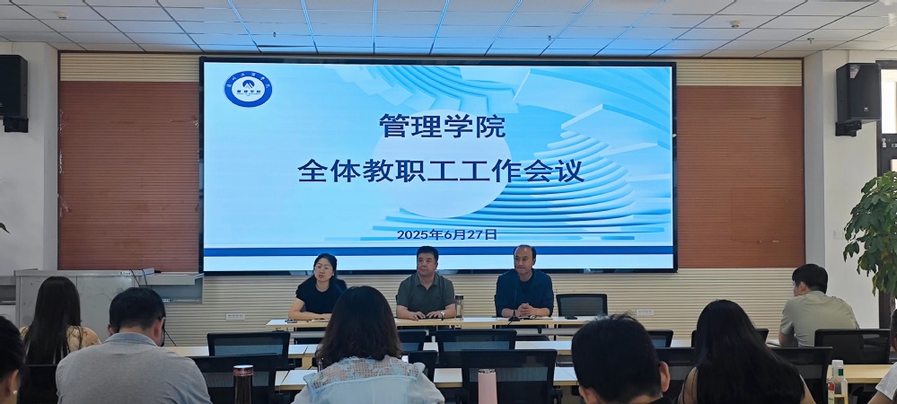 近日,管理学院在综合教学楼C501召开了全院教职工会议。学院领导班子成员及全院教职工参会。此次会议围绕期末考试、近期教学工作、学生管理、安全保障等关键工作,会议由党委书记、行政院长马进宝主持。