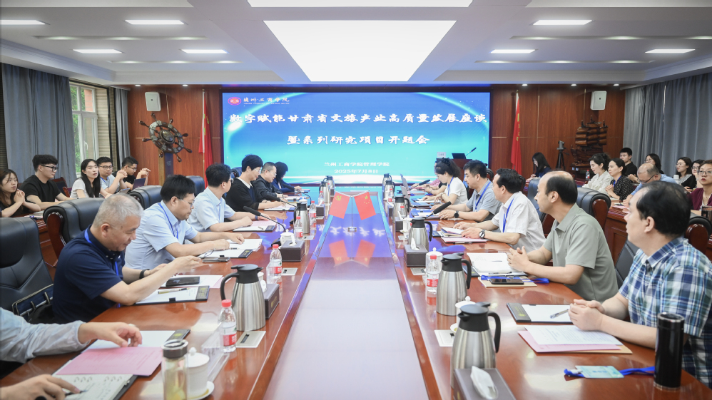 为进一步贯彻落实甘肃省第十四次党代会提出的发展县域旅游以提升文旅基础设施水平,大力发展县域全域旅游,促进文旅产业融合发展3项工作任务为目标的“强县域”要求,由甘肃省文化和旅游厅指导,兰州工商学院管理学院、甘肃省县域旅游发展研究中心主办的“数字赋能甘肃省文旅产业高质量发展座谈暨系列研究项目开题会”于2025年7月8日顺利在兰州工商学院举办。甘肃省文化和旅游厅副厅长闫永强,甘肃省社会科学院副院长王俊莲,兰州工商学院校长王华栋等领导参加会议。