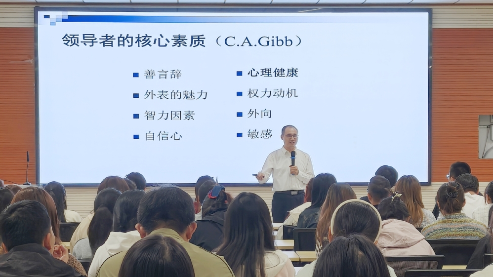 2025年9月26日晚,西北师范大学教授、博士生导师舒跃育应邀在综合教学楼C501为管理学院师生作了题为“领导者的核心素质与有效管理”的专题讲座。讲座聚焦领导者素质与管理效能之间的深层联系,以扎实的理论基础和丰富的实践视角,系统阐述了从“个人能力者”迈向“组织领航者”的关键路径。