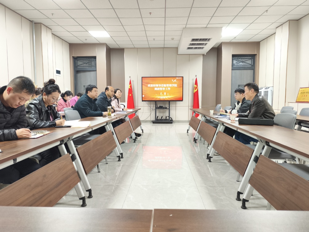 学院院长把多勋对宿校长的指导意见作出积极回应。他表示,学院将以此次调研为契机,锚定应用型人才培养目标,一方面强化实践教学与社会服务衔接,让人才培养更贴合行业需求;另一方面严格落实合格评估各项任务,将“以评促建、以评促改、以评促管”贯穿办学全过程。同时,学院将优化教工“三会一课”形式与内容,推动党建工作与学生管理、教学改革同频共振,以高质量党建引领学院事业高质量发展。