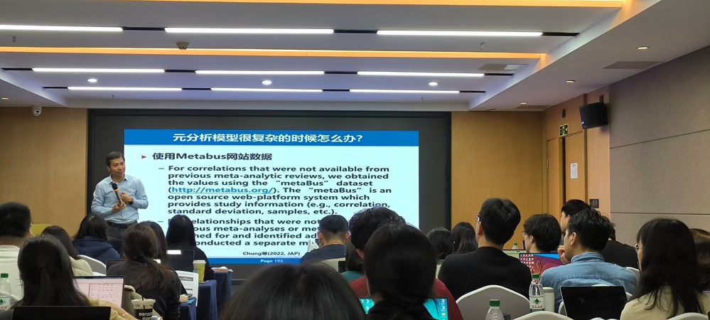 本次研讨会以“学会、学用、学精”为导向,聚焦智能元分析的实践应用与前沿探索,为参会教师搭建了高效务实的学习交流平台。卫旭华教授从元分析概述与选题技巧切入,逐步深入编码规范、发表偏差评价、效应值估计模型等核心操作,进而拓展至调节中介效应分析及元分析驱动的理论创新,层层递进构建完整知识体系。李超平教授分享了高效文献检索与软件筛选整理策略,重点解析R语言在元分析中的应用技巧,同时结合评审经验剖析元分析文章常见拒稿原因与优化路径,为教师提升学术成果质量提供针对性指导。