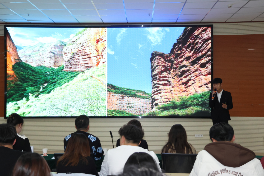 在前期初赛环节,比赛聚焦选手的导游讲解能力,由旅游管理教研室全体专业教师担任评委,重点考察选手对景点文化内涵的理解、语言表达的流畅度、讲解内容的逻辑性以及现场感染力。参赛选手自选甘肃省内代表性景点进行模拟讲解,充分展现了作为“文旅讲述者”的基本素养与专业潜力。经过严格评审,共有10名选手脱颖而出,晋级决赛。