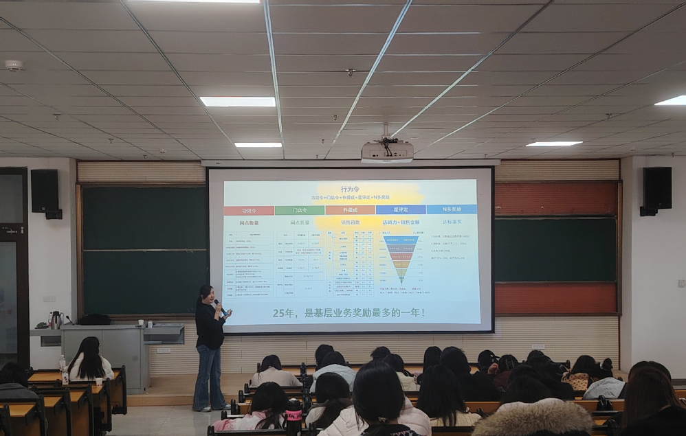 讲座伊始,陈龙吟女士结合自身在人力资源业务伙伴(HRBP)领域长达十七年的丰富经验,阐述了快消行业人力资源工作的特点与挑战随后,陈龙吟女士系统介绍了其主导推动的“靶心战略”在西北区域组织能力建设中的应用实践。她通过详实的案例、具体的数据和生动的案例,分享了如何识别业务痛点、定位组织能力短板、设计并落地人力资源解决方案,最终实现区域业绩持续增长和组织韧性的全面提升在互动环节,同学们踊跃提问,围绕“HRBP如何快速理解业务逻辑”“数字化对人力资源工作的影响”“如何平衡短期业务压力与长期组织建设”等问题与陈女士进行了深入交流。陈女士耐心解答,并鼓励同学们在校期间注重培养综合素养,既要扎实掌握专业知识,也要主动拓展行业视野,提升解决实际问题的能力。