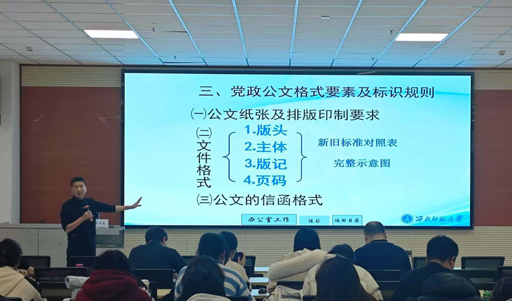 讲座中,李教授立足高校师生学习工作实际,开篇即点明实务文书在课程论文、实习报告、学术推荐信、工作计划、请示报告等场景中的核心价值,强调其规范性与专业性对信息传递效率的关键影响。围绕“格式规范”与“写作技巧”两大核心,他系统拆解通知、报告、申请书等常见文书的结构要素,明确字体字号、行间距、落款日期等细节要求;结合丰富案例深入剖析逻辑混乱、表述冗余等常见问题,提出“提纲先行、主旨聚焦、语言精准、数据支撑”的实操原则,分享“反复打磨、案例对标”的优化方法,内容详实且贴近实际。