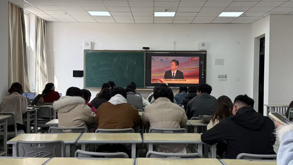 直播观看过程中,全体师生认真聆听政府工作报告,密切关注会议内容,深入学习报告中关于经济发展、民生保障、教育事业等重点领域的部署与规划。大家全神贯注、认真记录,深刻领会两会精神内涵,切实感受国家发展的新成就、新蓝图、新方向。通过集中观看直播,师生们全面了解了国家年度发展成果与未来工作规划,进一步明晰了新时代青年与教育工作者的使命任务。