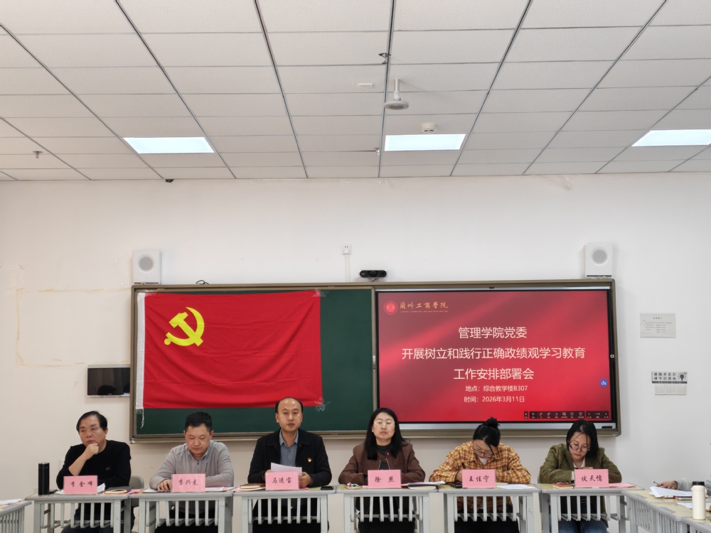 会上,全体参会人员集中学习习近平总书记关于树立和践行正确政绩观的重要讲话和指示精神,传达中央、省委党建工作领导小组及省委教育工委相关会议精神,详细解读学校党委学习教育工作方案,会议审议通过《中共兰州工商学院管理学院委员会开展树立和践行正确政绩观学习教育工作实施方案》(兰工商管院党发〔2026〕4 号)。