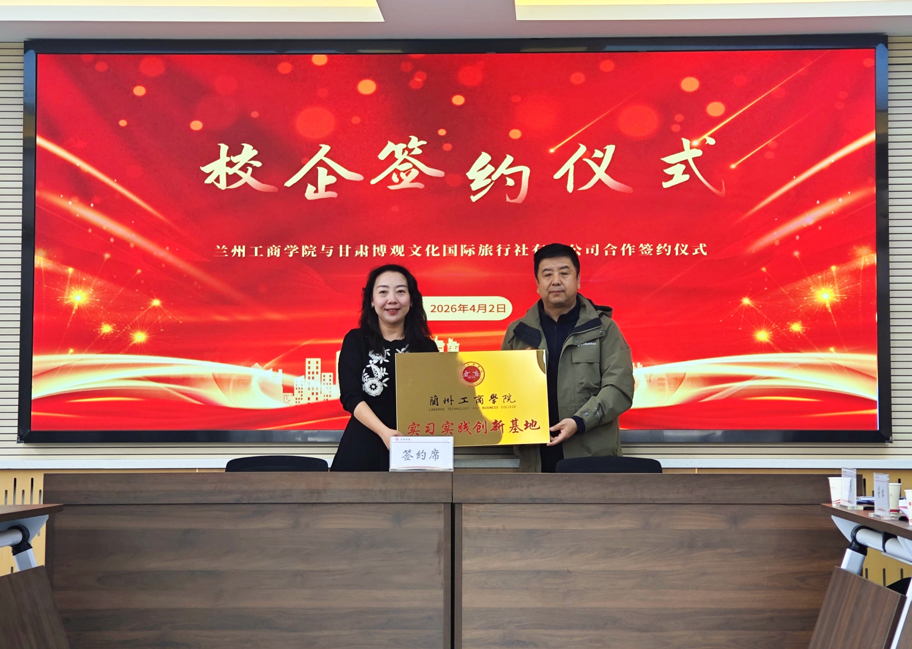 双方围绕人才培养、课程共建、岗位开发、就业保障等议题深入交流,达成多项合作共识。会上,学院与甘肃博观文化国际旅行社正式签署实习基地框架合作协议并授牌。此次活动标志着双方将持续深化产教融合,完善协同育人机制,共同培育文旅行业高素质技术技能人才,助力地方经济发展。