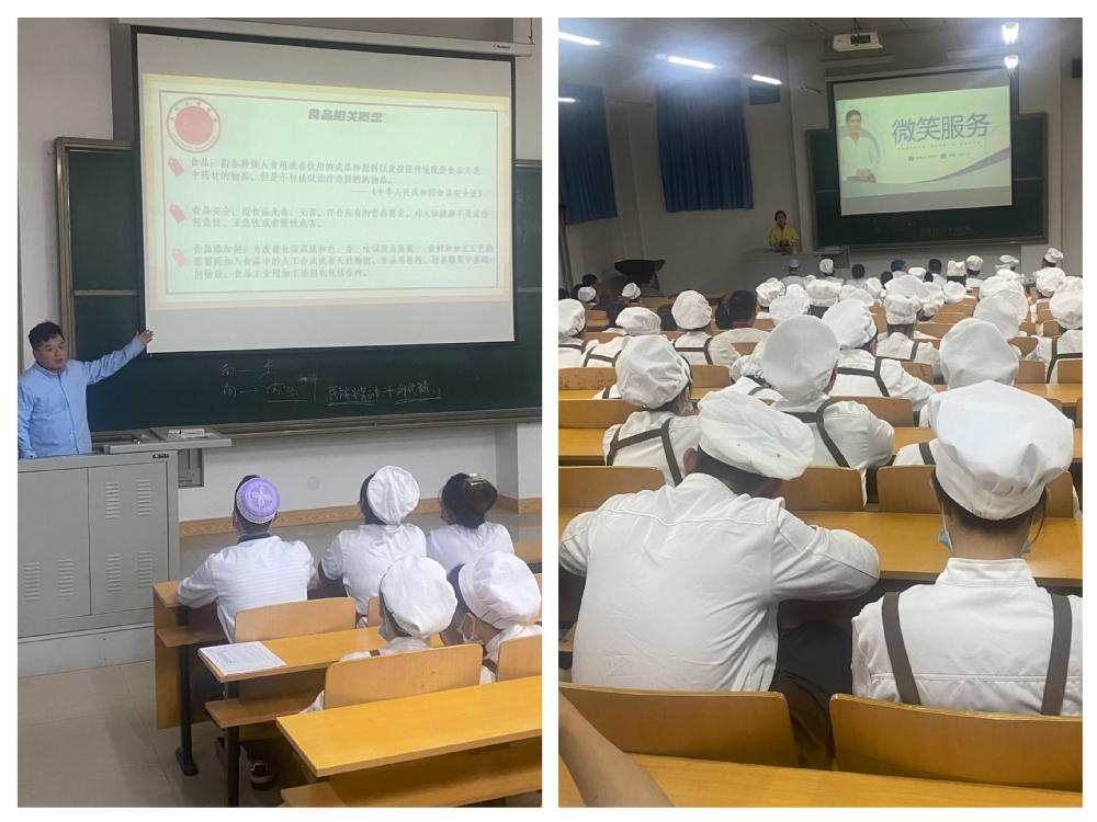 同日,膳食科段鹏老师对食品添加剂相关知识进行解读。段鹏老师从食品添加剂的定义、分类及作用、使用原则、带入原则、管理要求、案例警示等六个方面做了详细讲解,要求食品添加剂使用者能够严格按照使用规范进行操作。后勤管理处处长刘晖、副处长管昭分别就食品安全工作作出相关要求。
