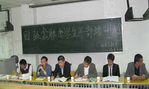 2012年5月8日20:00我系党总支在2号楼215教室举行全体学生干部培训大会。参加本次培训大会的领导有财政金融系党总支书记杨天斌、学生处学生管理科刘灿帅科长、财政金融系党总支副书记马进宝,以及财政金融系全体辅导员老师和财政金融系130余名学生干部。