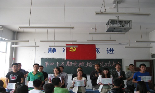 2012年5月18日下午,我系在善问楼210教室召开财政金融系第四十五期入党积极分子培训班总结大会,参加本次总结大会的有财政金融系党总支书记杨天斌、财政金融系党总支副书记马进宝、学生各支部书记以及财政金融系党总支委员。