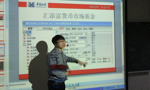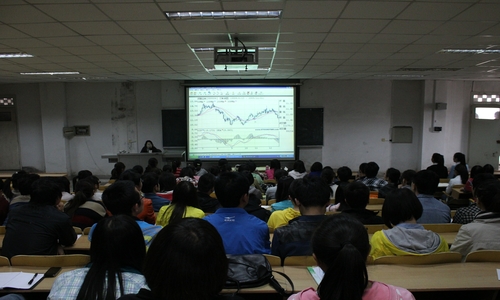 首先,史晓茹老师向同学们讲解了证券市场和股票操作方面的知识,让大家对证券市场及股票操作有了一个简单的了解,并就股票技术分析做了详细的讲解。其次,华龙证券公司证券投资顾问王经理就模拟炒股大赛的流程及其操作方法向同学们作了详细阐述,最后,就如何选股,如何进行技术分析等问题进行了详细讲解。