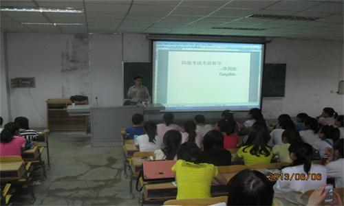 会上,谭剑波老师针对报考英语四、六级的同学们进行了考前辅导,主要讲述了怎样提高大学生学习英语的兴趣,怎样高效的记忆英语词汇,怎样写好英语作文以及英语四、六级考试的答题技巧和注意事项,并对同学们在英语学习中存在的问题和困难进行了解答。最后,我系高级年级已经通过英语四、六级的同学和低年级同学分享了自己学习英语的方法和经验。