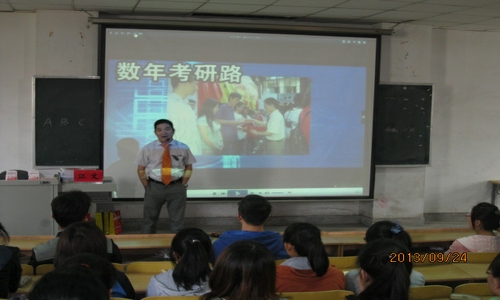 9月24日下午,财政金融系在2号楼215教室举行了考研励志报告会,邀请考研辅导名师江文老师对我系大三、大四学生做了一次考研专题报告,就考研的前期准备和注意事项进行了详细的讲解,分析了当前的考研形势和必要性,鼓励同学们刻苦学习,积极备考,不抛弃、不放弃。