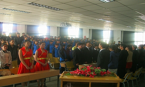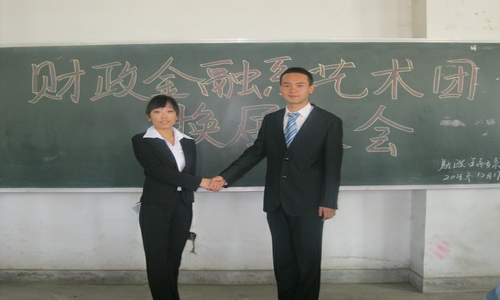 会上,郭思莹老师宣读了《关于李琛等同学职务任免的通知》;随后,我系第一届艺术团团长朱蕾同学对上学年工作做了总结,新一届艺术团团长马龙同学做了就职演讲;财政金融系团总支学生会常委代表王金祥同学发言,之后,进行了新老团长交接仪式。