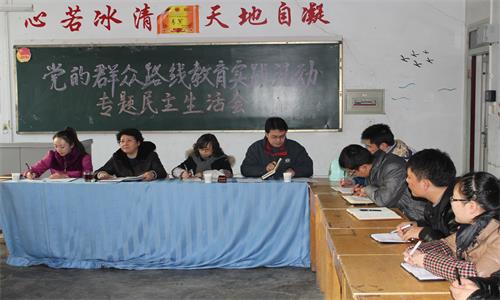 12月16日、17日下午,我系党总支根据学院党委的安排,在108教室召开的党的群众路线教育实践活动专题民主生活会。学院党委王新兰书记到会指导并听取了系领导班子和个人对照检查材料的汇报。会议由党总支副书记郭思莹主持,全体教职工参加了会议。