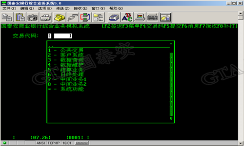 银行模拟操作系统-----深圳市国泰安信息技术有限公司研发。该软件包括银行存取款和贷款业务、规范的现金凭证管理、全面的结算业务、现代化支付系统、中间业务。商业银行通用系统的支票出售模块、现金下发模块、凭证上缴模块、现金凭证领用模块、现金凭证回收模块、现金凭证调入模块、现金凭证调出模块等功能模块。国泰安商业银行综合业务教学软件是基于国内商业银行现役综合业务系统较新的版本转型教学化而来的,业务功能完全仿真,真实地体现现代商业银行的管理和业务流程。系统基于目前国内商业银行最新一代的综合业务系统的业务模式即综合柜员制的管理和操作模式。本系统支持全行一本帐的业务管理模式,支持终端及相关的打印设备(可以按照真实的业务单据进行相关的打印工作,同时系统可以实现连接密码键盘、刷卡器等相关外部设备)。系统提供简捷的终端界面,充分地融合了银行业务操作和教学操作的特点。通过业务的操作,深入了解银行的客户管理,账户管理,财务管理,会计管理的相关流程及理念,熟悉银行内部架构、角色分配及业务相关信息。