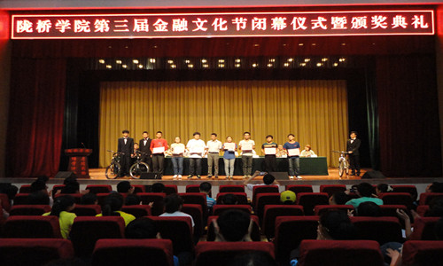 首先,教务处处长高军宣读了《关于表彰陇桥学院第三届金融文化节“兰州银行杯”点钞大赛及“华龙证券杯”模拟炒股大赛获奖同学的决定》;财政金融系主任史安玲宣读了《关于表彰“电信杯”金融知识竞赛获奖同学的决定》、《关于表彰财政金融系首届 ”挑战杯大学生课外学术作品竞赛”获奖同学的决定》;财政金融系党总支副书记张小龙宣读了《关于表彰大智慧“全国高校金融精英选拔赛”获奖同学的决定》;财政金融系党总支副书记、行政副主任郭思莹宣读了《关于表彰“专业、就业、创业与成长”主题征文比赛获奖同学的决定》。随后,兰州银行郑明昊先生和华龙证券马欣先生以及学院领领导为获奖同学颁发了荣誉证书和奖品。
