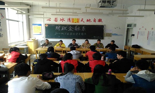 9月29日中午,财政金融系在2号教学楼108教室召开了2014级公益劳动课安排会。系党总支副书记张小龙、系行政副主任郭思莹出席,2014级辅导员范瑞雅、李鹏程老师及学生会和2014级各班负责人参加了会议。会议由团总支书记张德红主持。