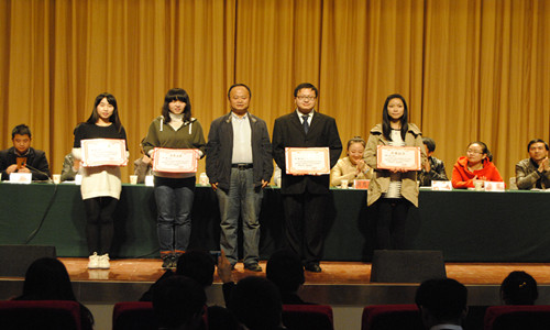 接着举行了2013-2014学年先进表彰大会,会上樊元教授、孙世强副书记、史安玲主任、张小龙副书记、郭思莹副书记、陈建平老师、李鹏程老师等分别为我系获得“优秀党务工作者”、“优秀共产党员”、“优秀学生辅导员”、“优秀学生干部”等荣誉称号的同学颁发了证书。同时,张小龙副书记为新聘任的七名2014级学生辅导员颁发了聘书。随后樊元教授对党、团、学干部工作发表了重要讲话,他首先对上一届学生干部的工作表达感谢,并对新一届团学干部表示热烈祝贺,他勉励广大学生干部要关注学院发展,锻炼自己,履行好干部职责,并就学生管理工作对团学干部提出了四点希望。接着团委副书记孙世强发表了讲话,他希望学生干部准确定位自己;注重培养,狠抓落实;注重动手实践能力;善学习,勤思考,多总结。大会最后,党总支副书记张小龙对本次大会进行总结并提出四点希望,希望各团学干部继续学习党的理论,深入党的思想,创建学习性组织;希望加强自身组织建设,完善自我管理机构;希望新一届团学干部树立服务意识、大局意识;希望学生干部、全体党员立德修身,勤于砺炼,端正品行,做品行的榜样。