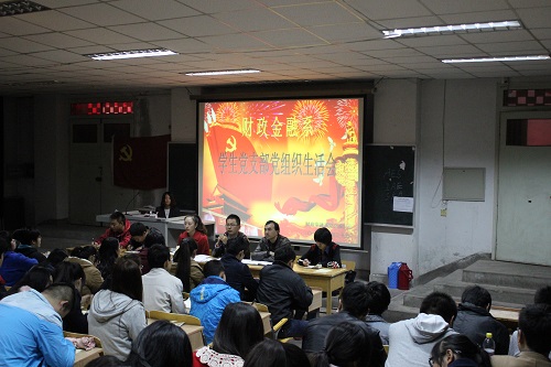 我系师生高度关注十八届四中全会的召开,系党总支及时关注全会动态并号召各党支部、全体党员通过电视、网络、报纸收看、阅读十八届四中全会实况、学习全会精神。为了进一步认真学习全会有关内容和精神,提高基层党员对党的方针、政策的认识水平,增强党组织凝聚力, 10月30日下午16:30-18:20,财政金融系党总支组织全系学生党员在2号教学楼115教室举行了十八届四中全会精神集体学习活动。党总支副书记张小龙老师、郭思莹老师,学生第三党支部书记刘少东老师、党总支委员杨超、李红及我系全体学生党员一起参加了学习活动,学习活动由党总支组织委员兼党政秘书李鹏程主持。